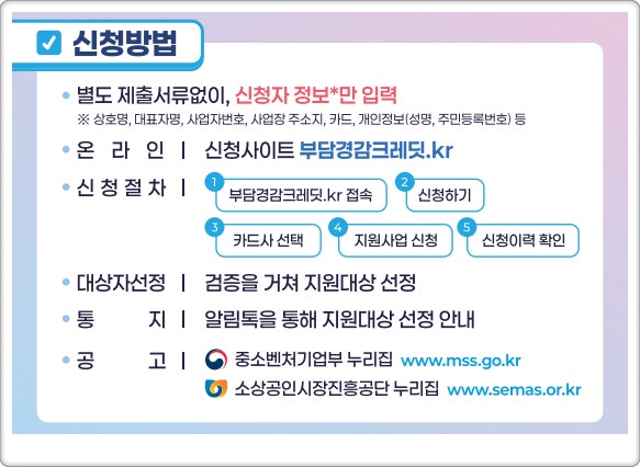 부담경감크레디트. kr은 중소벤처기업부와 관련 기관이 운영하는 공식 포털로,