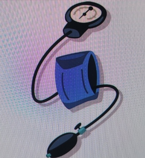 혈압계의 고리를 팔 위쪽으로 고정한 후, 수축기 혈압(혈압이 가장 높을 때의 값)을 측정하기 위해 공기를 펌핑합니다.