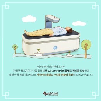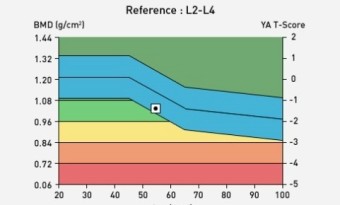 1. 진단적 조기평가 (DEXA 스캔): 이중 에너지 X선 흡수골밀도 측정(DEXA 스캔)은 골다공증 진단의 "골격 시험"으로 널리 사용됩니다. 요추와 대퇴부 (허벅지뼈)의 골밀도를 측정하여 골다공증의 정도를 확인하는 데 사용됩니다. 골밀도 측정은 특히 골다공증이 의심되는 사람들에게 권장됩니다.