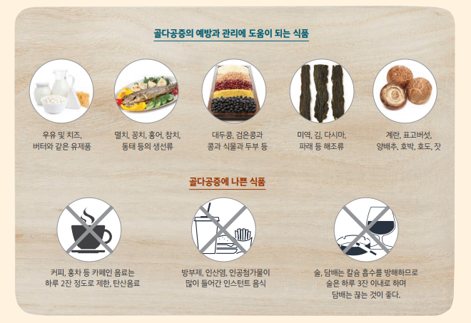 * 건강한 식습관: 영양소를 포함한 건강한 식습관은 뼈 건강을 지키는 데 중요합니다. 칼슘과 비타민 D를 충분히 섭취하는 것이 중요합니다.