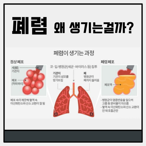 폐렴은 폐에 염증이 생긴 상태입니다. 바이러스나 세균에 의해 발생하며, 다양한 증상을 보일 수 있어요.