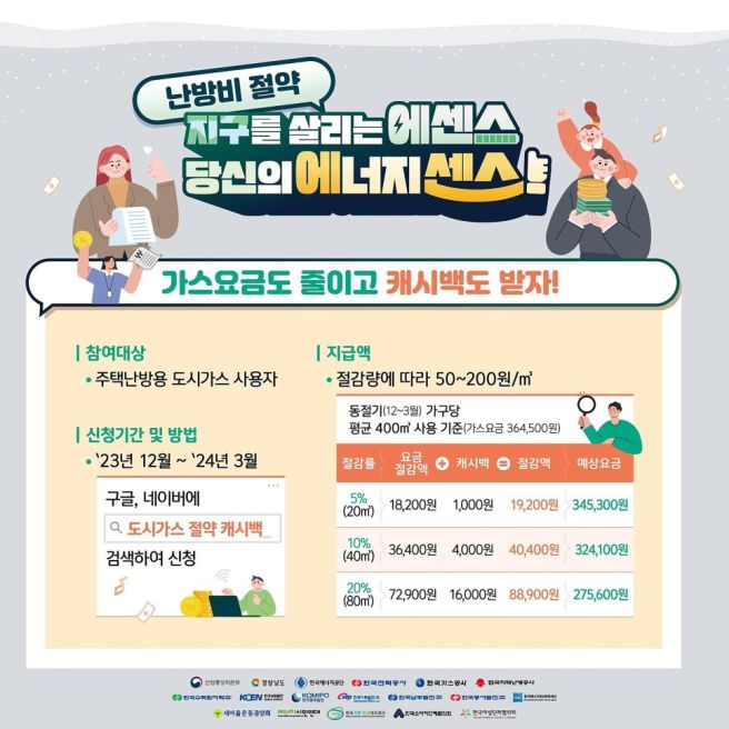 도시가스 캐시백, 지금 바로 신청하세요! 에너지 절약은 물론 현금 혜택까지 챙길 수 있는 절호의 기회입니다. 환경도 지키고 가계비도 아끼는 스마트한 선택, 놓치지 마세요!"